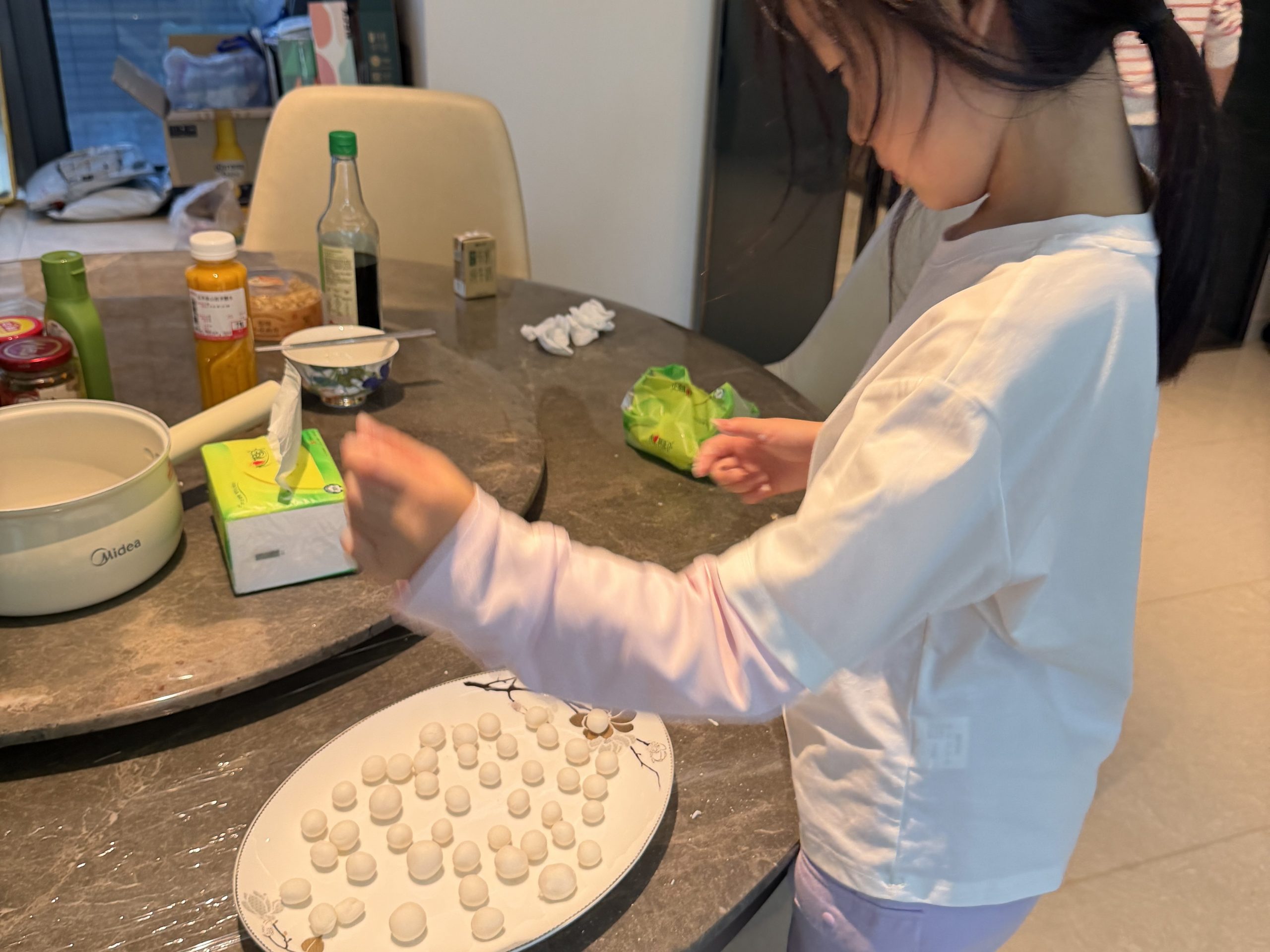 今年冬至刚好周末,小希早早跟林太商量要带她去永旺采购食材,买了面粉、胡萝卜、肉糜等准备搓汤圆和包饺子。