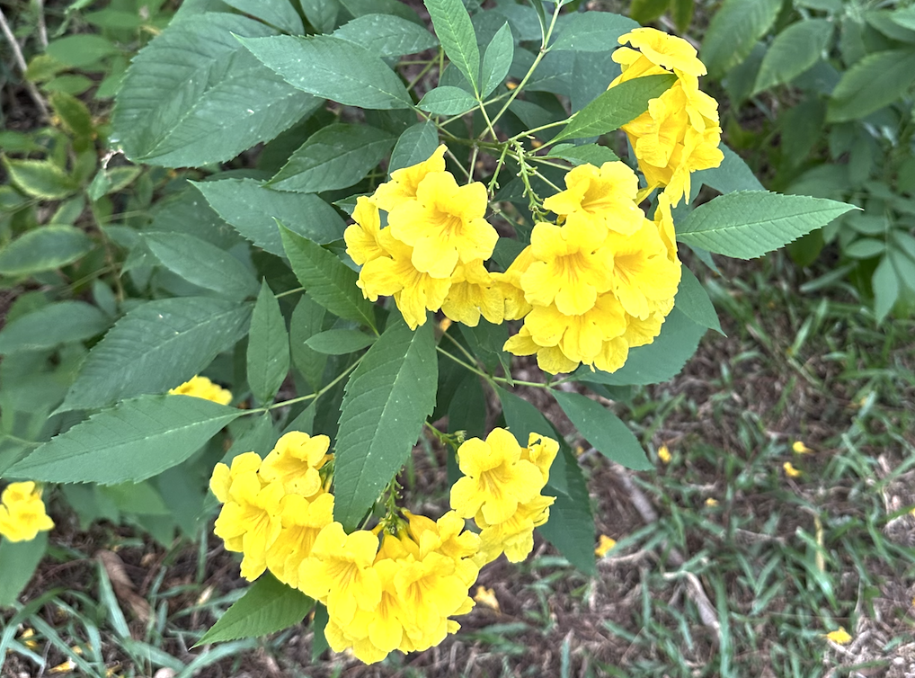 这花色让我想起,黄花风铃木…前几个月正是盛开的季节,非常亮眼,忍不住多看几眼。