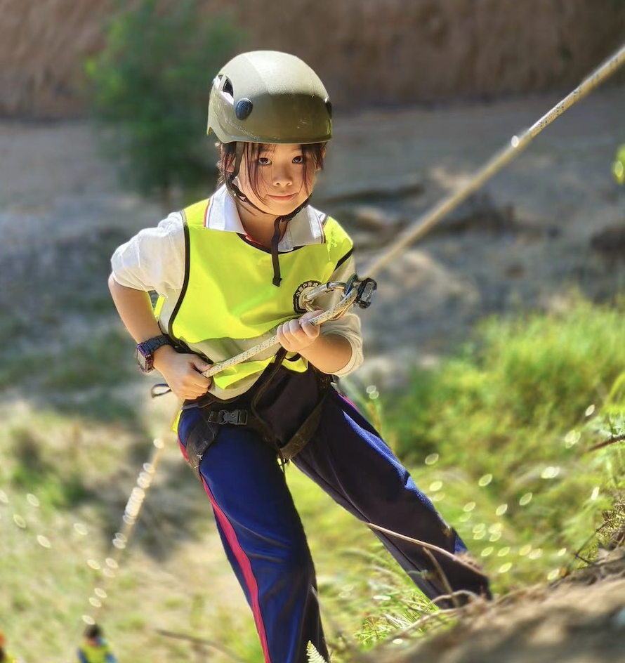 听着哭声,我有点担心地打了大希的电话手表想鼓励下她,没想到她说她已经降完,是第6个降的,还略带不屑地说有些小朋友不敢绳降哭鼻子。老父亲听完还是很高兴的,果然是条女汉子。20多个小朋友3个多小时才终于降完。