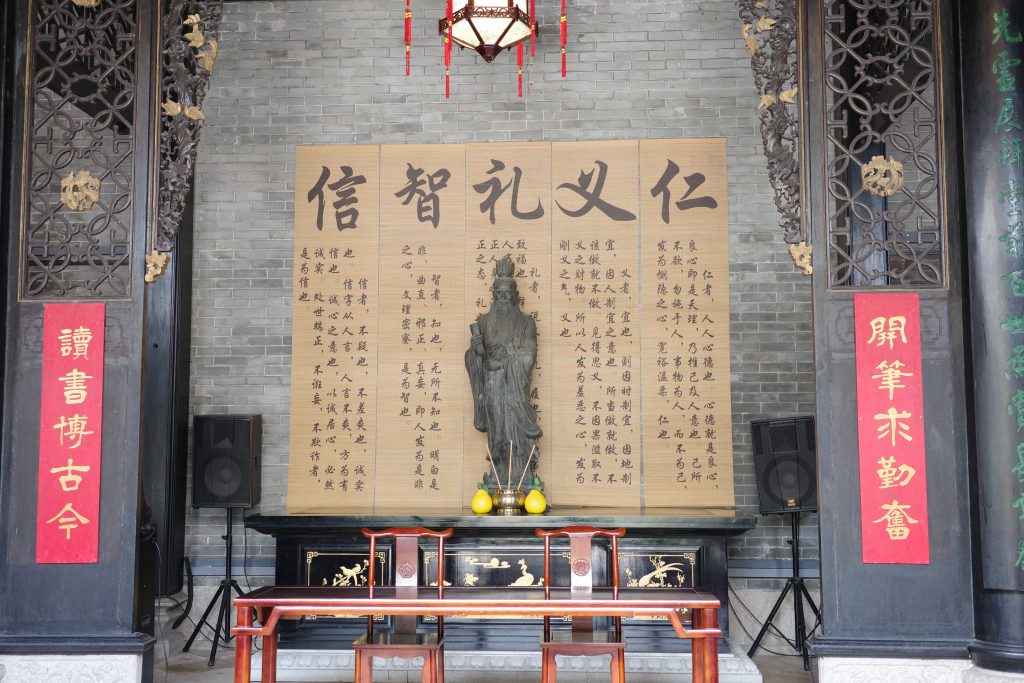 邬氏一门三举人,在祠堂门口竖有3块刻着中举记录的石碑。书墅也是设立在其中,没记错的话,一侧应该是供奉着文曲星官。