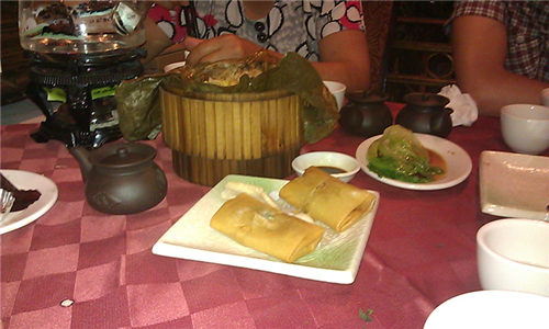 白云凤爪、炸春卷、荷叶蒸饭、马蹄糕,美味~!