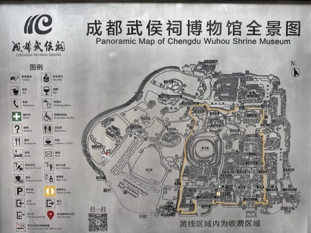 3、下午休息后出发武侯祠,仿佛来成都非得去趟武侯祠才不虚此行。离酒店打车10多分钟路的距离,算上塞车,20分钟到达。达到时门口已是密密麻麻的人群,因没有提前买票,现场自动售票机也已排着长队,发现不买票也能进入景区只是无法进入核心景点,放弃买票简单逛逛。