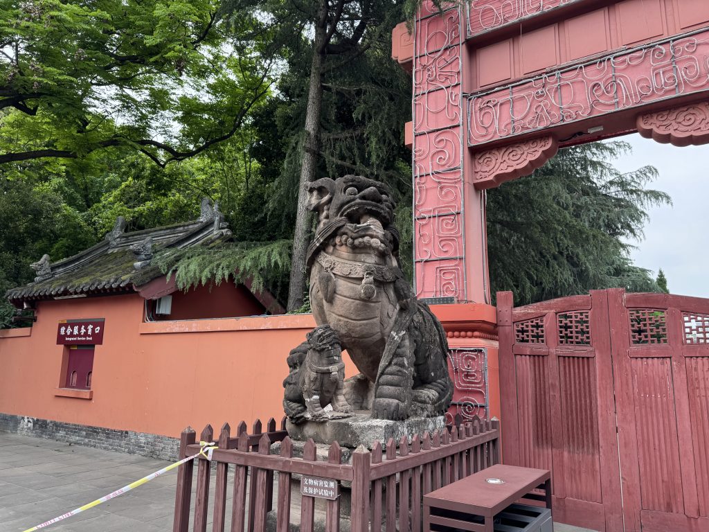 4、非核心景区更多是各种小店,人流涌动,带着小孩不方便,简单走一圈就出来,门口的石狮看着就挺有年代感,拍照留念。
