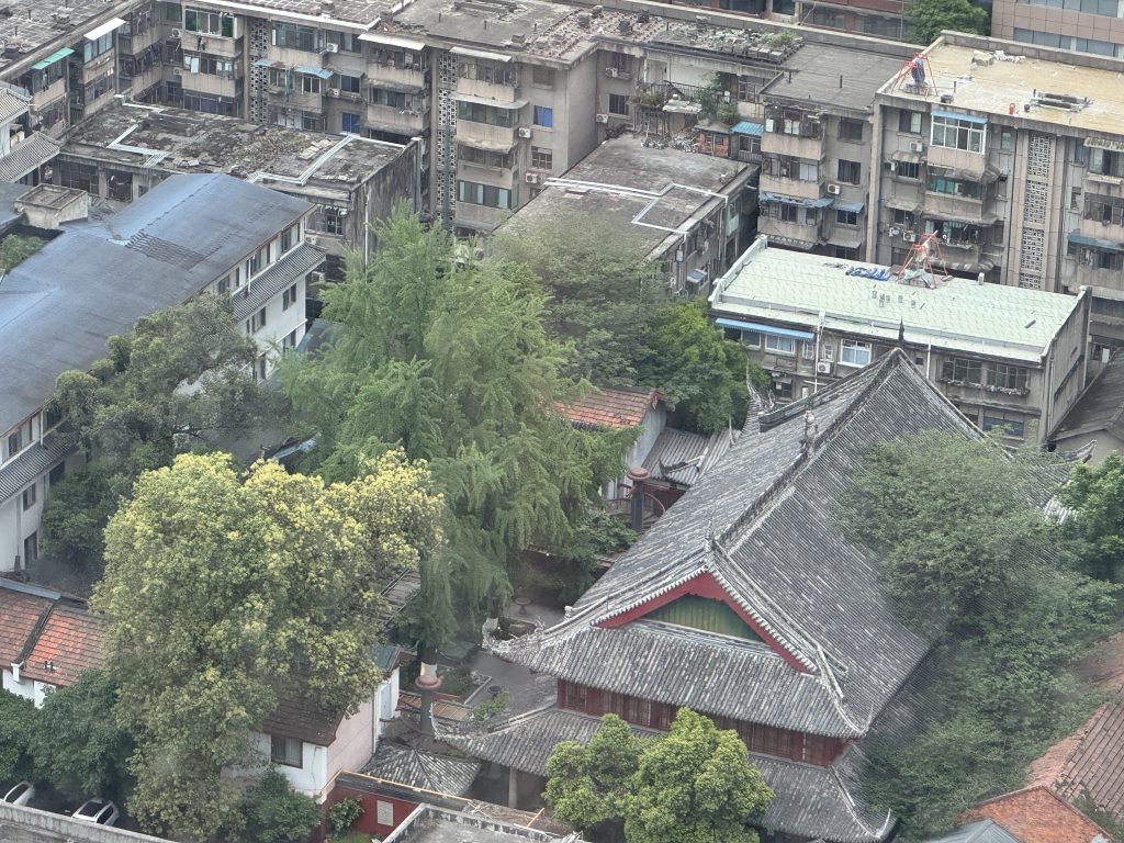 5、酒店窗户下看到一栋古建筑,好奇找了下,发现居然是由旅川的陕西商人所建的陕西会馆,始建于清康熙二年(1663年),是成都最早的会馆之一。建筑庄重典雅,有飞檐翘首、回廊曲折,门前还有石狮子和拱形小桥。