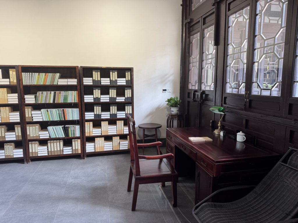 两侧是厢房,左侧一排是精品店,右侧一排是图书馆和叶圣陶书房。