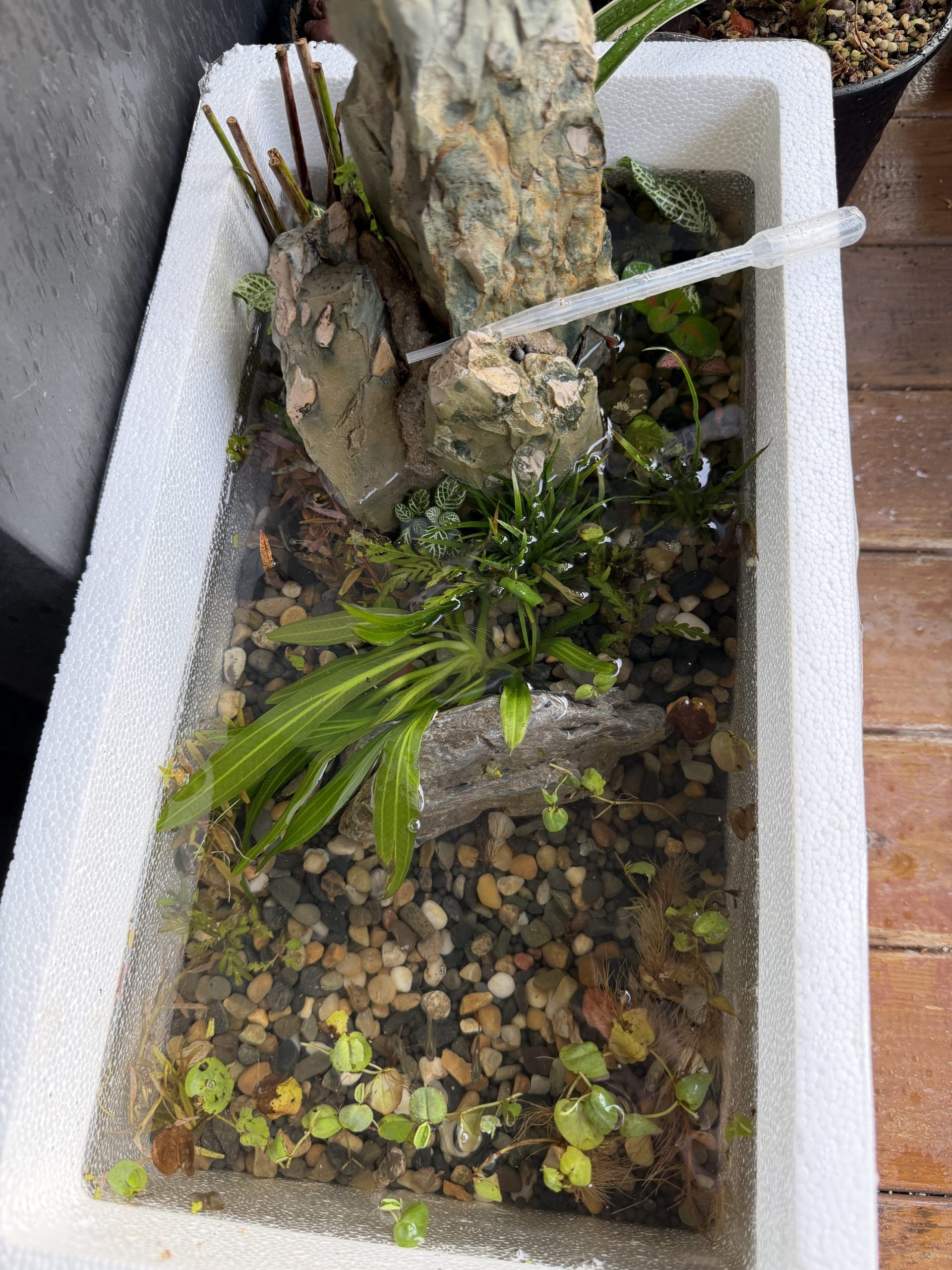 上次说泡沫箱很适合在阳台种花,萌发用它在阳台做生态缸的想法,本周采购的水草、泥、砂石到货了,很快就把它搞起来。