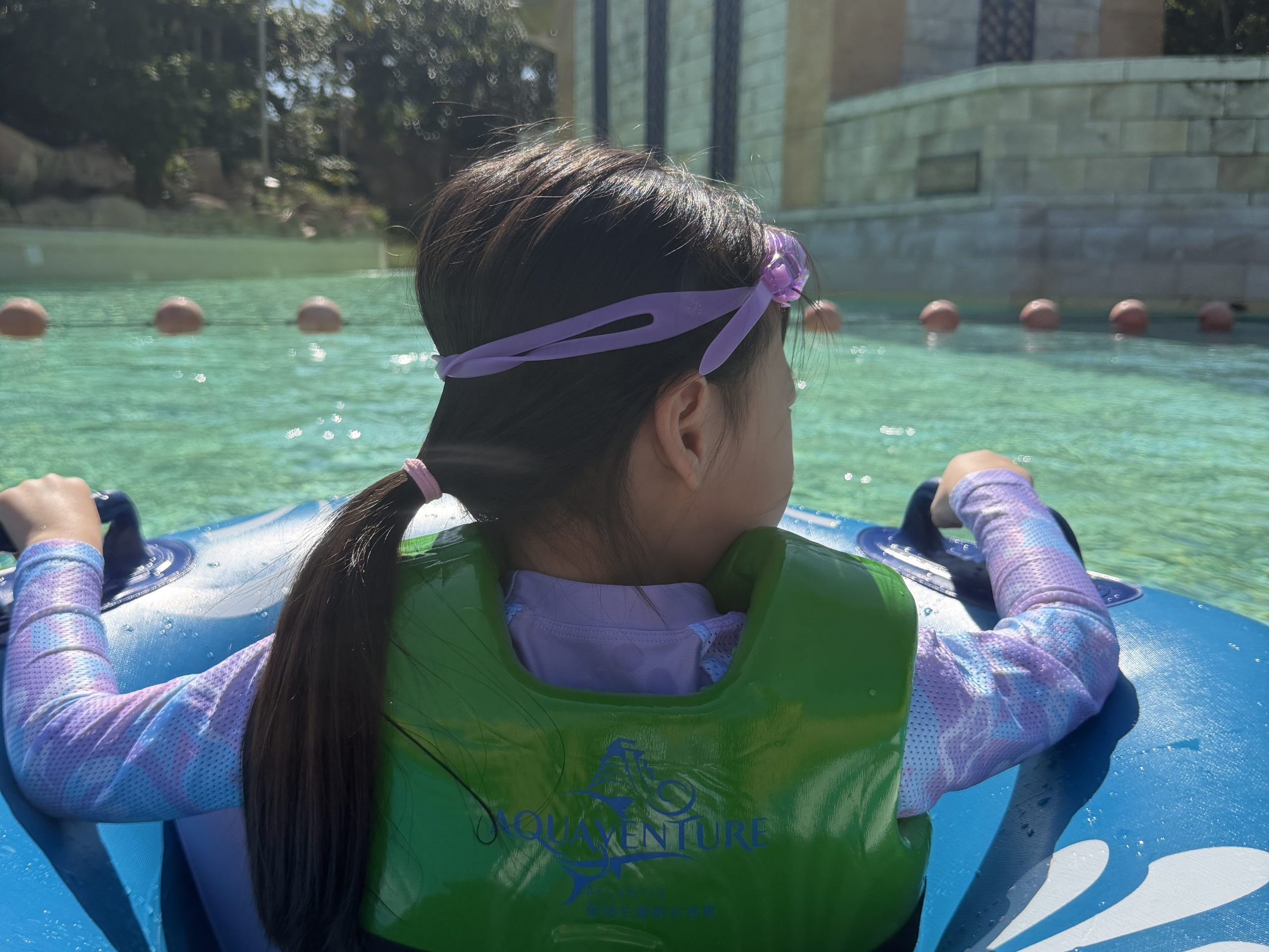 临近中午气温回升,小朋友们就急着回房间换上泳衣(怕入冬的三亚水冷特意全部换了长袖泳衣),大小希和堂弟、表弟们直奔水世界的漂流区。