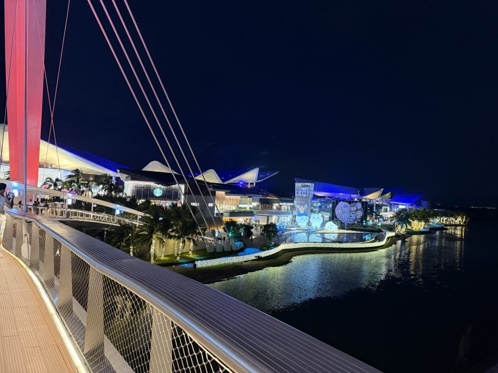 相比23年年中来那次,免税城扩建了C区还有二期,规模大很多,可能封关带动很多国内游客来淘货叠加元旦假期,人流还挺密集的,连接一二期商场的是一座悬索桥,还挺有设计感。