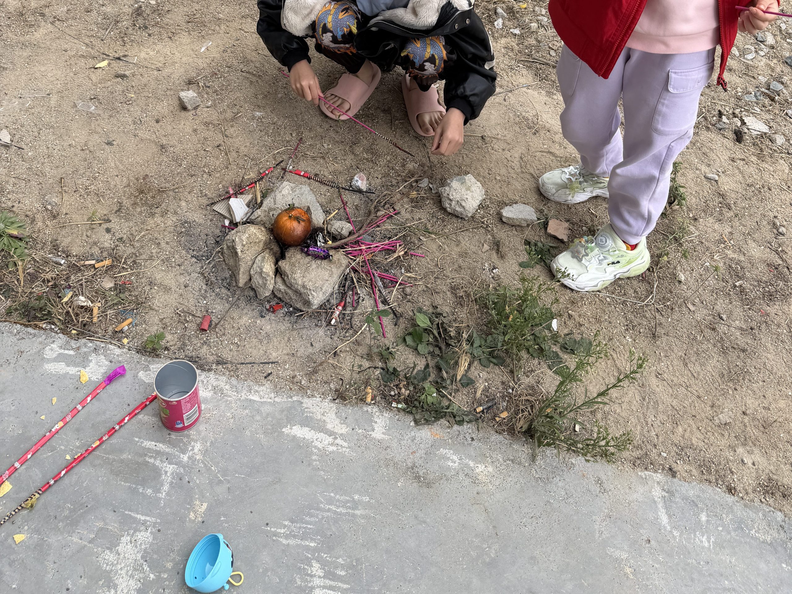 小朋友这是在烤橘子吗