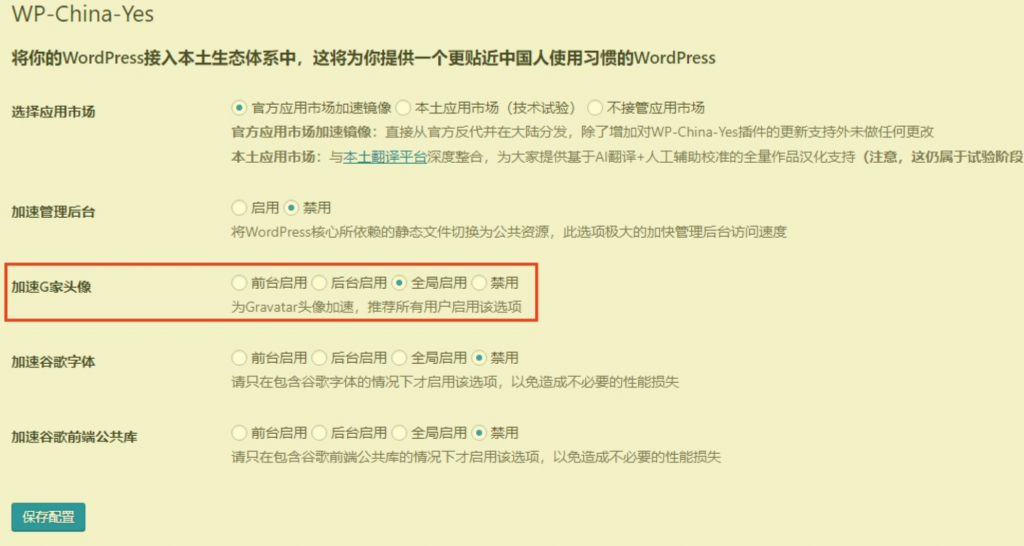 wordpress更新到最新版后,发现Gravatar头像不显示了,刚开始以为是更新版本后风格模板的兼容问题,今晚研究了下,原来主因还是因为Gravatar被墙了,几番搜索,更新了几次Gravatar头像调取代码都无法解决问题,最终在一篇文章看到说安装WP-China-Yes插件可以解决,抱着试一试的心态,最终解决了问题。